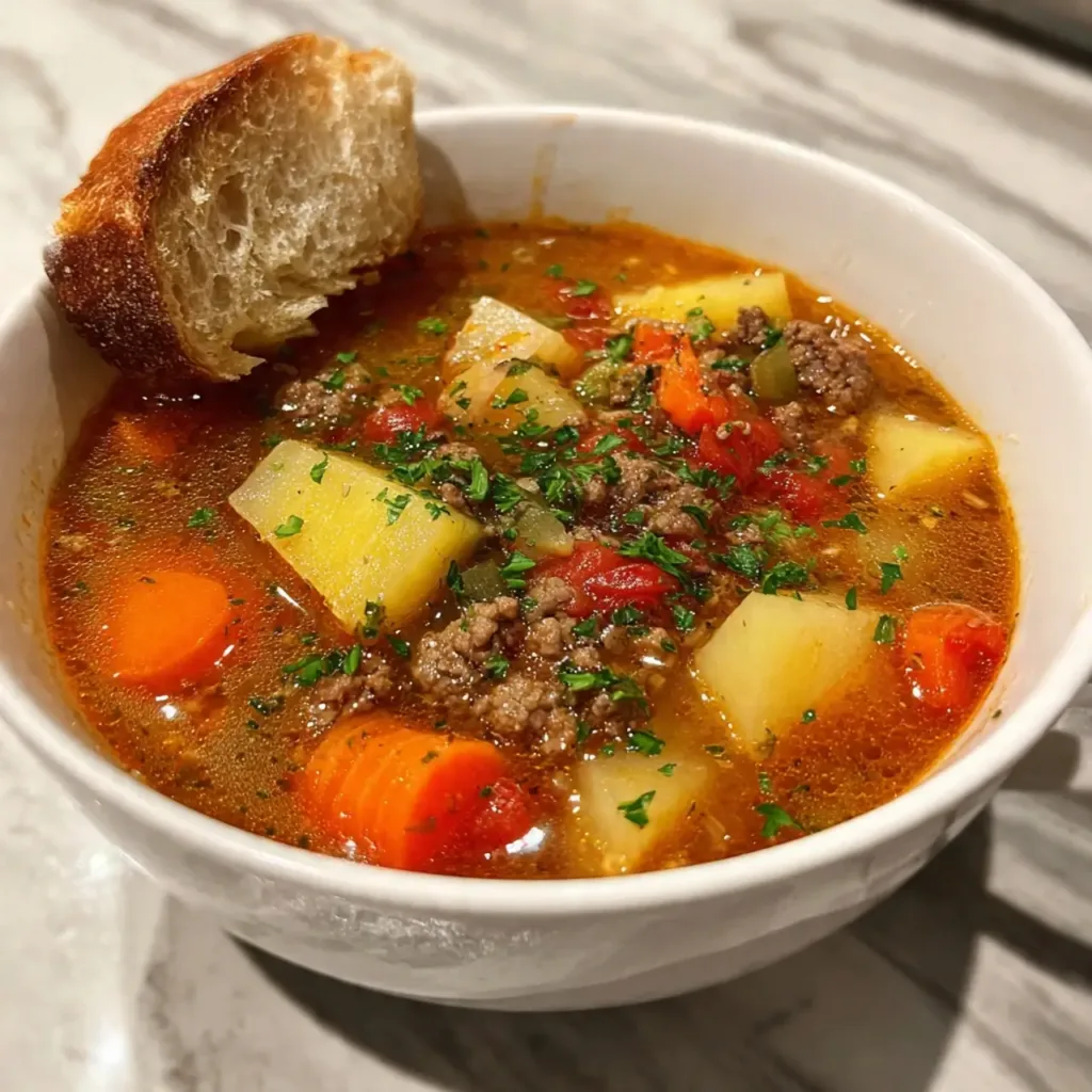 This hearty hamburger soup is loaded with ground beef, vegetables, and a flavorful tomato broth. A one-pot dinner perfect for busy nights.
